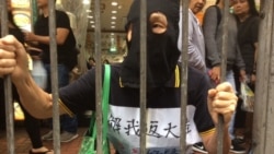 着黑衣戴黑头套的示威者 (美国之音记者申华拍摄)