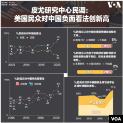 美国人对中国的负面看法与对中国处理新冠疫情两者有关联。皮尤研究中心研究员、报告主要撰写者劳拉·西尔弗(Laura Silver)对美国之音说:“对中国持负面看法的美国人更倾向于认为中国对疫情的初期处理很大程度上导致了病毒的全球传播,反之亦然。显然两者间有很强的关联。”