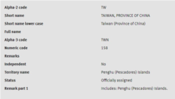 台湾监察委员张武修7日表示,国际标准组织(ISO)在国家及所属机构名称代码的栏目当中,长期不法且不当将台湾列为中国的一省,并阻碍台湾参与相关议题的合作。